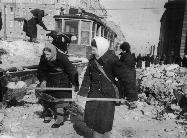 На улицах дети с учительницами собирали кирпичи в кучи – и разбирали завалы, и, одновременно, готовились к уличным боям (так говорили учителя). Разбирали завалы на дорогах, очищали трамвайные пути. Летом 1942 года пошли трамваи.